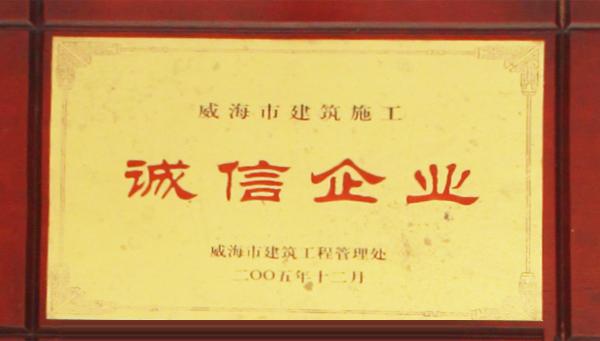 公司連續八年榮獲威海市“誠信開發企業”、“建筑施工誠信企業”,連續九年被評為威海市級“守合同重信用企業”,多次被評為威海市“市級文明單位”、“質量管理先進企業”、 “安全管理先進企業”,乳山市“優秀企業”、“先進民營企業”、“納稅明星企業”,在社會上逐步樹立了誠信、穩健的企業形象。